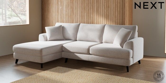 7.2.6 Buy Parker Medium Sofa Chaise - Left Hand Multi Weave Oyster Low Retro Tapered - Dark from the Next UK online shop Click here to use our accessible website