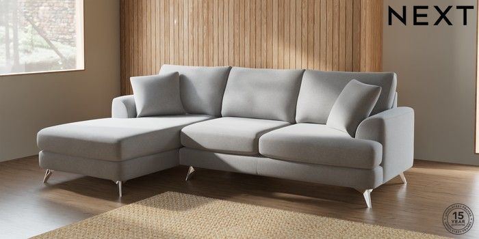 7.0.3 Buy Parker Medium Sofa Chaise - Left Hand Natural Mix Light Grey High Metal - Chrome from the Next UK online shop Click here to use our accessible website