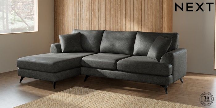 7.2.5 Buy Parker Medium Sofa Chaise - Left Hand Plush Chenille Dark Grey High Metal - Black from the Next UK online shop Click here to use our accessible website