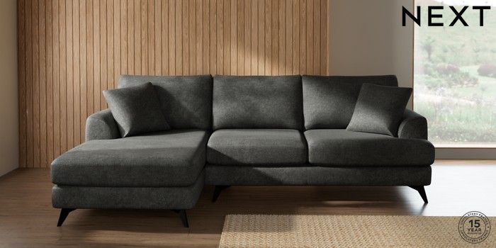 7.2.10 Buy Parker Medium Sofa Chaise - Left Hand Plush Chenille Dark Grey High Metal - Black from the Next UK online shop Click here to use our accessible website