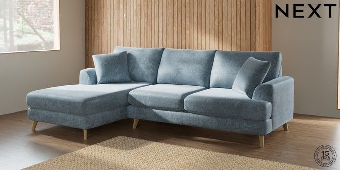 7.2.6 Buy Parker Medium Sofa Chaise - Left Hand Plush Chenille Light Blue Low Retro Tapered - Light from the Next UK online shop Click here to use our accessible website