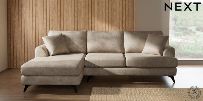 7.2.10 Buy Parker Medium Sofa Chaise - Left Hand Plush Chenille Light Natural High Metal - Black from the Next UK online shop Click here to use our accessible website