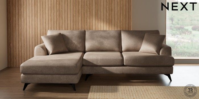 7.2.10 Buy Parker Medium Sofa Chaise - Left Hand Plush Chenille Mid Natural High Metal - Black from the Next UK online shop Click here to use our accessible website