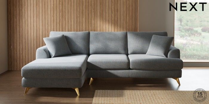 7.2.6 Buy Parker Medium Sofa Chaise - Left Hand Chunky Marl Mid Grey High Metal - Brass from the Next UK online shop Click here to use our accessible website