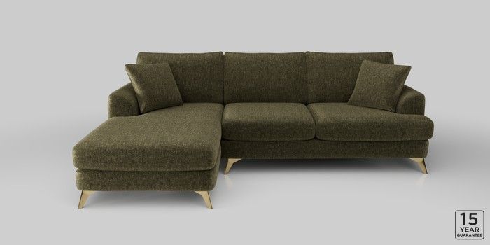6.12.1 Buy Parker Medium Sofa Chaise - Left Hand Plush Chenille Moss Green High Metal - Brass from the Next UK online shop Click here to use our accessible website