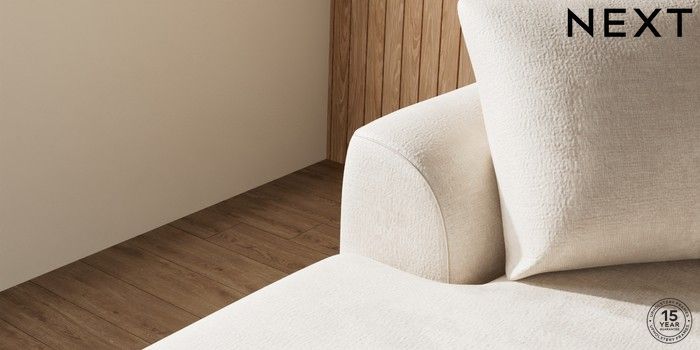 7.2.4 Buy Parker Medium Sofa Chaise - Left Hand Plush Chenille Oyster Low Retro Tapered - Dark from the Next UK online shop Click here to use our accessible website