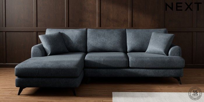 7.2.10 Buy Parker Medium Sofa Chaise - Left Hand Plush Chenille Slate Blue High Metal - Black from the Next UK online shop Click here to use our accessible website