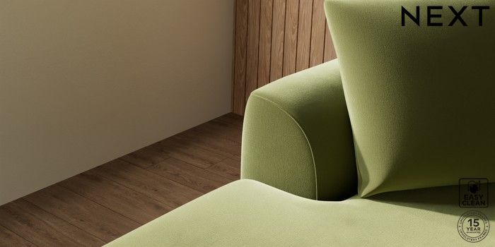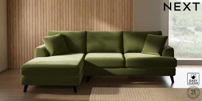 7.3.1 Buy Parker Medium Sofa Chaise - Left Hand Plush Velvet Easy Clean Mid Olive Green Low Retro Tapered - Dark from the Next UK online shop Click here to use our accessible website