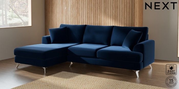 7.2.5 Buy Parker Medium Sofa Chaise - Left Hand Plush Velvet Easy Clean Navy Blue High Metal - Chrome from the Next UK online shop Click here to use our accessible website
