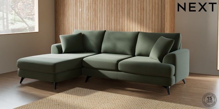 7.2.5 Buy Parker Medium Sofa Chaise - Left Hand Relaxed Linen Look Dark Green High Metal - Black from the Next UK online shop Click here to use our accessible website