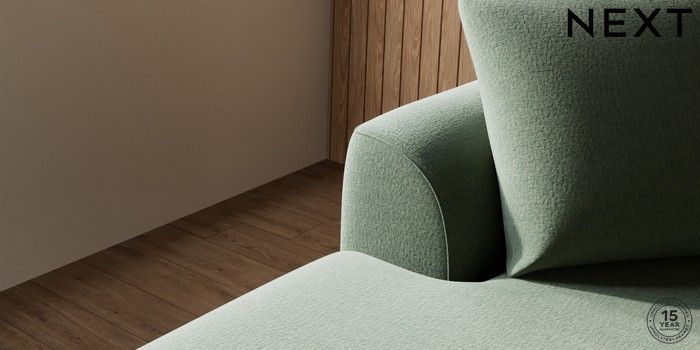 7.3.1 Buy Parker Medium Sofa Chaise - Left Hand Relaxed Linen Look Dark Green High Metal - Brass from the Next UK online shop Click here to use our accessible website