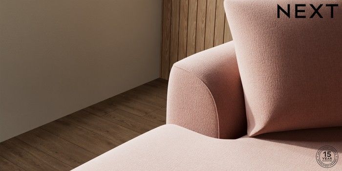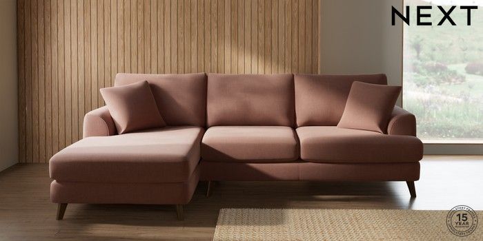 7.2.10 Buy Parker Medium Sofa Chaise - Left Hand Relaxed Linen Look Light Rust Brown Low Retro Tapered - Mid from the Next UK online shop Click here to use our accessible website