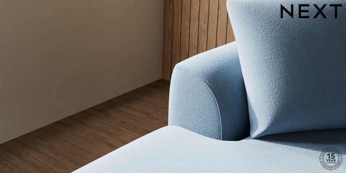 7.2.10 Buy Parker Medium Sofa Chaise - Left Hand Relaxed Linen Look Mid Blue Low Retro Tapered - Mid from the Next UK online shop Click here to use our accessible website