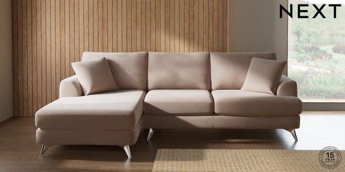 7.2.10 Buy Parker Medium Sofa Chaise - Left Hand Relaxed Linen Look Mid Natural High Metal - Chrome from the Next UK online shop Click here to use our accessible website