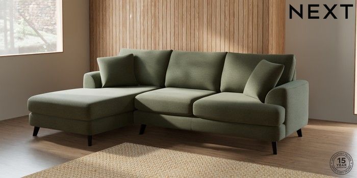 7.2.5 Buy Parker Medium Sofa Chaise - Left Hand Ripple Chenille Mid Moss Green Low Retro Tapered - Dark from the Next UK online shop Click here to use our accessible website