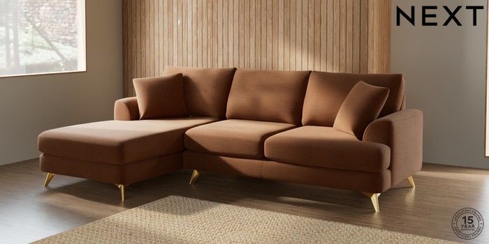 7.2.5 Buy Parker Medium Sofa Chaise - Left Hand Ripple Chenille Mid Rust Brown High Metal - Brass from the Next UK online shop Click here to use our accessible website