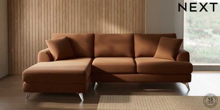 7.2.10 Buy Parker Medium Sofa Chaise - Left Hand Ripple Chenille Mid Rust Brown High Metal - Chrome from the Next UK online shop Click here to use our accessible website