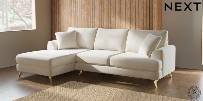 7.2.5 Buy Parker Medium Sofa Chaise - Left Hand Ripple Chenille Oyster High Metal - Brass from the Next UK online shop Click here to use our accessible website
