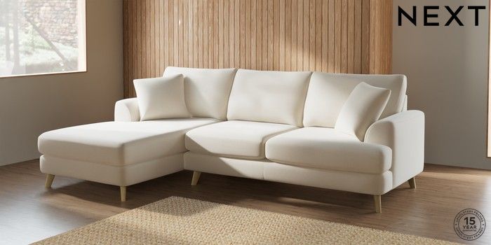 7.2.4 Buy Parker Medium Sofa Chaise - Left Hand Ripple Chenille Oyster Low Retro Tapered - Light from the Next UK online shop Click here to use our accessible website