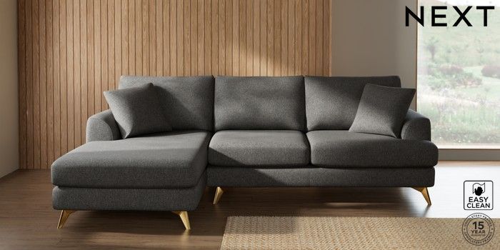 7.2.10 Buy Parker Medium Sofa Chaise - Left Hand Tweedy Blend Easy Clean Dark Grey High Metal - Brass from the Next UK online shop Click here to use our accessible website