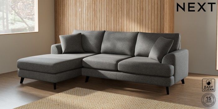 7.2.4 Buy Parker Medium Sofa Chaise - Left Hand Tweedy Blend Easy Clean Dark Grey Low Retro Tapered - Dark from the Next UK online shop Click here to use our accessible website