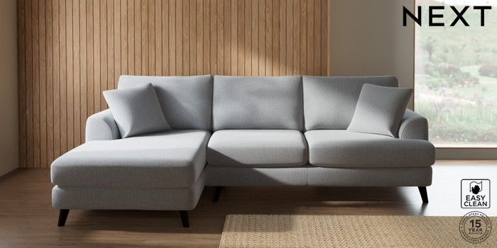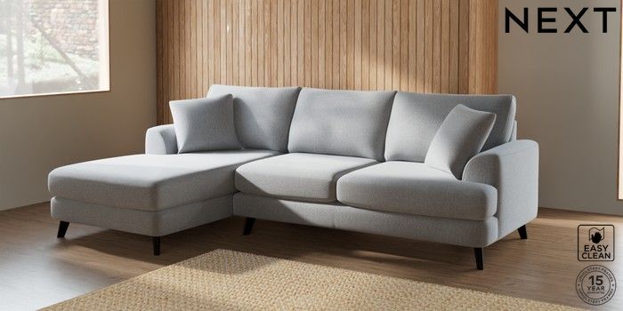 7.2.4 Buy Parker Medium Sofa Chaise - Left Hand Tweedy Blend Easy Clean Light Silver Grey Low Retro Tapered - Dark from the Next UK online shop Click here to use our accessible website