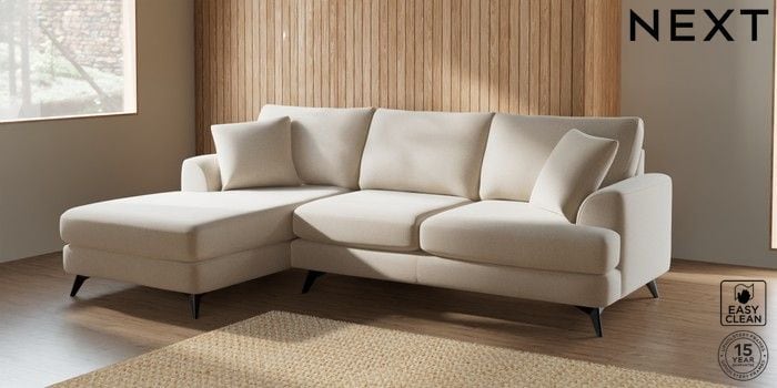 7.2.5 Buy Parker Medium Sofa Chaise - Left Hand Tweedy Blend Easy Clean Oyster High Metal - Black from the Next UK online shop Click here to use our accessible website