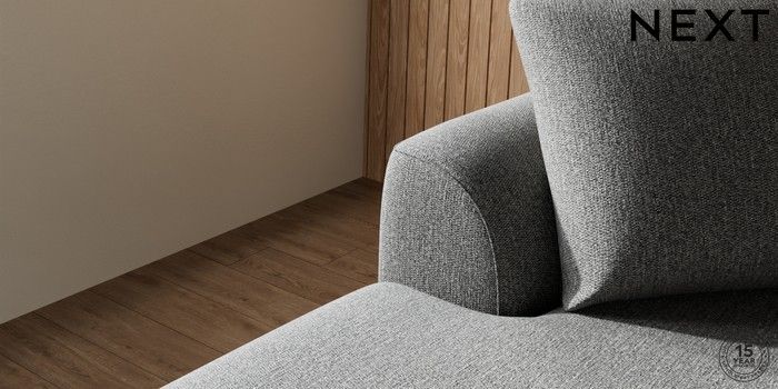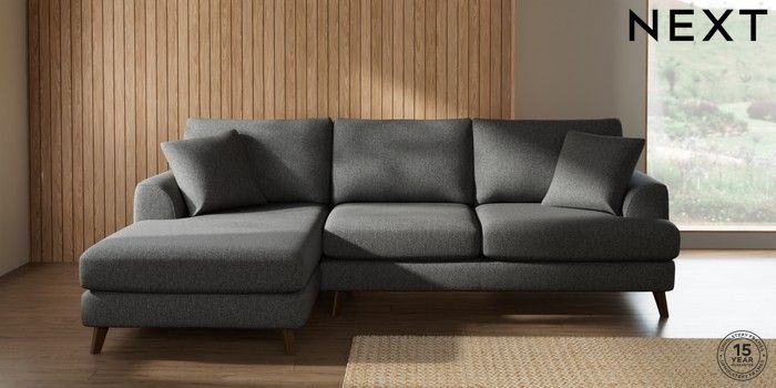 7.3.1 Buy Parker Medium Sofa Chaise - Left Hand Tweedy Chenille Dark Grey Low Retro Tapered - Mid from the Next UK online shop Click here to use our accessible website