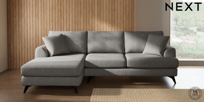 7.2.10 Buy Parker Medium Sofa Chaise - Left Hand Tweedy Chenille Mid Grey High Metal - Black from the Next UK online shop Click here to use our accessible website
