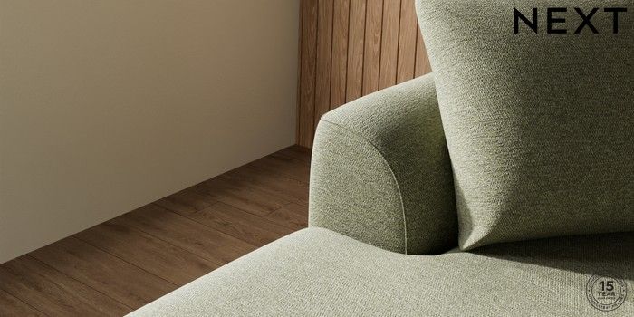 7.2.10 Buy Parker Medium Sofa Chaise - Left Hand Tweedy Chenille Mid Moss Green High Metal - Chrome from the Next UK online shop Click here to use our accessible website