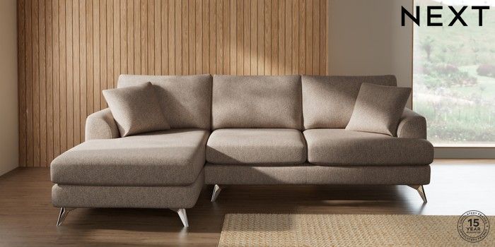 7.2.10 Buy Parker Medium Sofa Chaise - Left Hand Tweedy Chenille Mid Natural High Metal - Chrome from the Next UK online shop Click here to use our accessible website