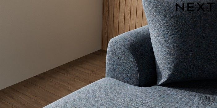 7.2.10 Buy Parker Medium Sofa Chaise - Left Hand Tweedy Chenille Navy Blue High Metal - Brass from the Next UK online shop Click here to use our accessible website