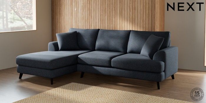 7.2.5 Buy Parker Medium Sofa Chaise - Left Hand Tweedy Chenille Navy Blue Low Retro Tapered - Dark from the Next UK online shop Click here to use our accessible website