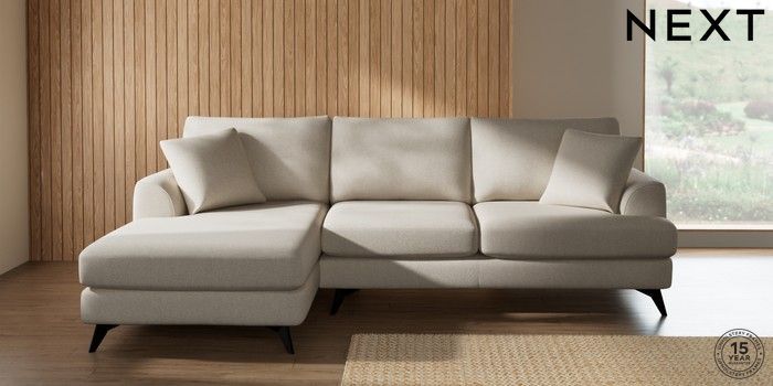 7.3.1 Buy Parker Medium Sofa Chaise - Left Hand Tweedy Chenille Oyster High Metal - Black from the Next UK online shop Click here to use our accessible website