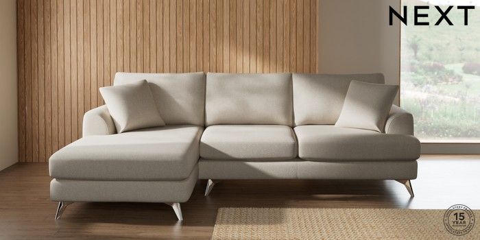 7.2.10 Buy Parker Medium Sofa Chaise - Left Hand Tweedy Chenille Oyster High Metal - Chrome from the Next UK online shop Click here to use our accessible website