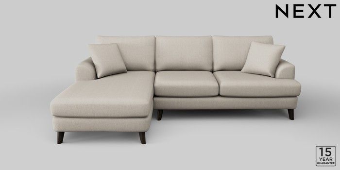 6.12.1 Buy Parker Medium Sofa Chaise - Left Hand Tweedy Chenille Oyster Low Retro Tapered - Dark from the Next UK online shop Click here to use our accessible website