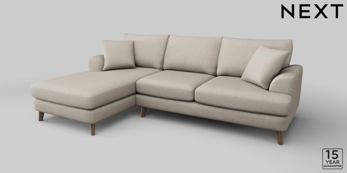 6.12.1 Buy Parker Medium Sofa Chaise - Left Hand Tweedy Chenille Oyster Low Retro Tapered - Mid from the Next UK online shop Click here to use our accessible website