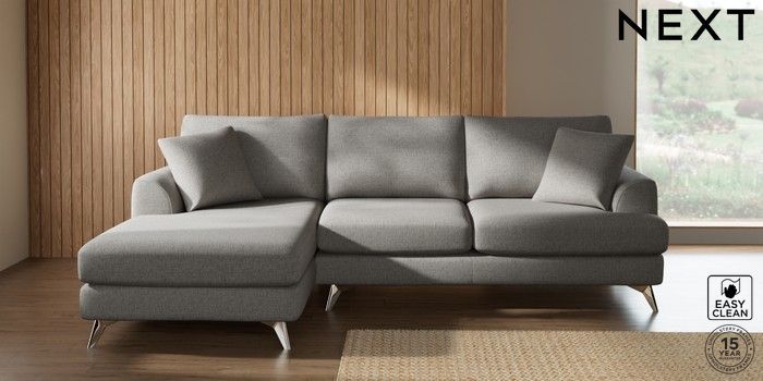7.2.10 Buy Parker Medium Sofa Chaise - Left Hand Woven Chenille Easy Clean Light Grey High Metal - Chrome from the Next UK online shop Click here to use our accessible website