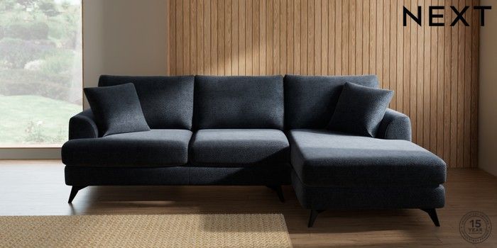 7.2.10 Buy Parker Medium Sofa Chaise - Right Hand Boucle Chenille Dark Slate Blue High Metal - Black from the Next UK online shop Click here to use our accessible website