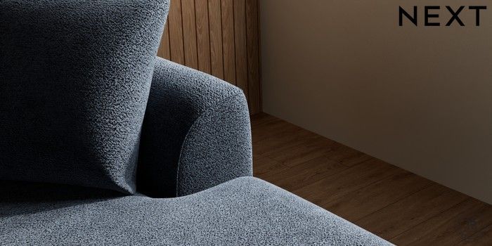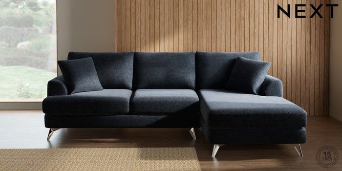 7.2.10 Buy Parker Medium Sofa Chaise - Right Hand Boucle Chenille Dark Slate Blue High Metal - Chrome from the Next UK online shop Click here to use our accessible website