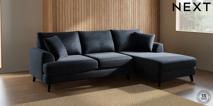 7.2.5 Buy Parker Medium Sofa Chaise - Right Hand Boucle Chenille Dark Slate Blue Low Retro Tapered - Dark from the Next UK online shop Click here to use our accessible website