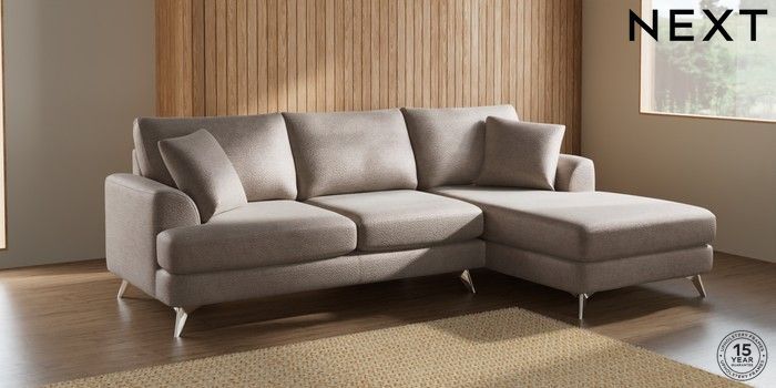 7.2.5 Buy Parker Medium Sofa Chaise - Right Hand Boucle Chenille Light Natural High Metal - Chrome from the Next UK online shop Click here to use our accessible website