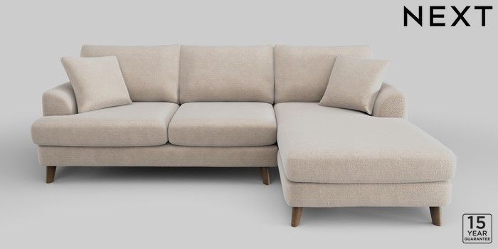 6.12.1 Buy Parker Medium Sofa Chaise - Right Hand Boucle Chenille Oyster Low Retro Tapered - Mid from the Next UK online shop Click here to use our accessible website