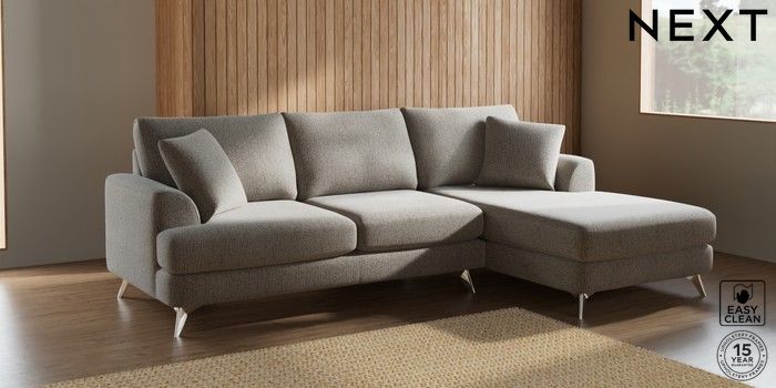 7.2.5 Buy Parker Medium Sofa Chaise - Right Hand Chunky Boucle Easy Clean Dove High Metal - Chrome from the Next UK online shop Click here to use our accessible website