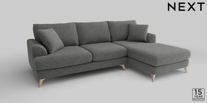 6.12.1 Buy Parker Medium Sofa Chaise - Right Hand Chunky Chenille Dark Grey High Metal - Brass from the Next UK online shop Click here to use our accessible website