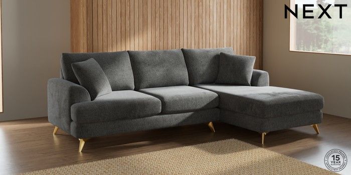 7.2.5 Buy Parker Medium Sofa Chaise - Right Hand Chunky Chenille Dark Grey High Metal - Brass from the Next UK online shop Click here to use our accessible website
