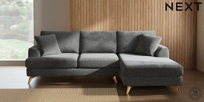 7.2.10 Buy Parker Medium Sofa Chaise - Right Hand Chunky Chenille Dark Grey High Metal - Brass from the Next UK online shop Click here to use our accessible website