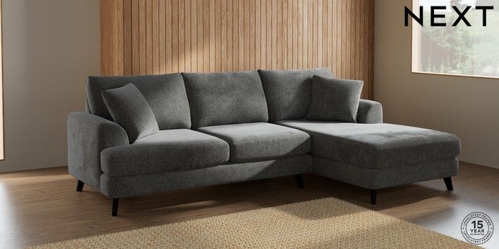 7.2.5 Buy Parker Medium Sofa Chaise - Right Hand Chunky Chenille Dark Grey Low Retro Tapered - Dark from the Next UK online shop Click here to use our accessible website