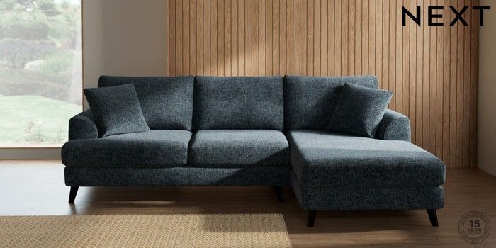 7.2.10 Buy Parker Medium Sofa Chaise - Right Hand Chunky Chenille Dark Navy Blue Low Retro Tapered - Dark from the Next UK online shop Click here to use our accessible website