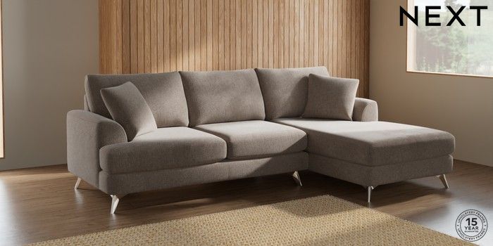 7.2.5 Buy Parker Medium Sofa Chaise - Right Hand Chunky Chenille Light Dove High Metal - Chrome from the Next UK online shop Click here to use our accessible website